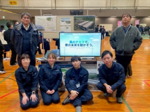 当社のPRブースでは、風力発電によって作られたエコな電気を安定的に送っていること、蓄電池の数を電気自動車の台数に例え、設備の大きさを実感してもらうこと、仕事のやりがいや働きやすさを説明し、映像を交えて紹介しました。