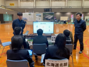 このイベントは稚内市内の中学1年生を対象に地元の産業・企業について知ってもらい、子供たちのより充実した産業教育やインターンシップに繋げ、将来的な地元就職、Uターンの促進を目的に、当社を含めて45の企業が参加しました。